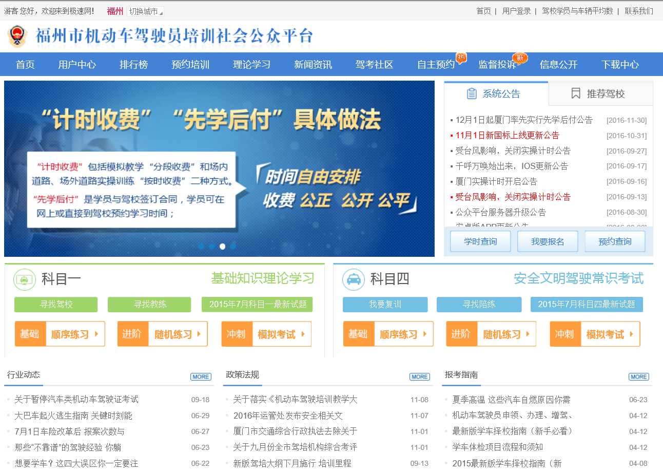 描 述:网站是福建省最权威的驾培平台网站,包括厦门市等9地市驾培,学员可以在公众平台进行理论学习,模拟考试,找驾校,找教练及找到相关驾校和教练的评价信息等。
