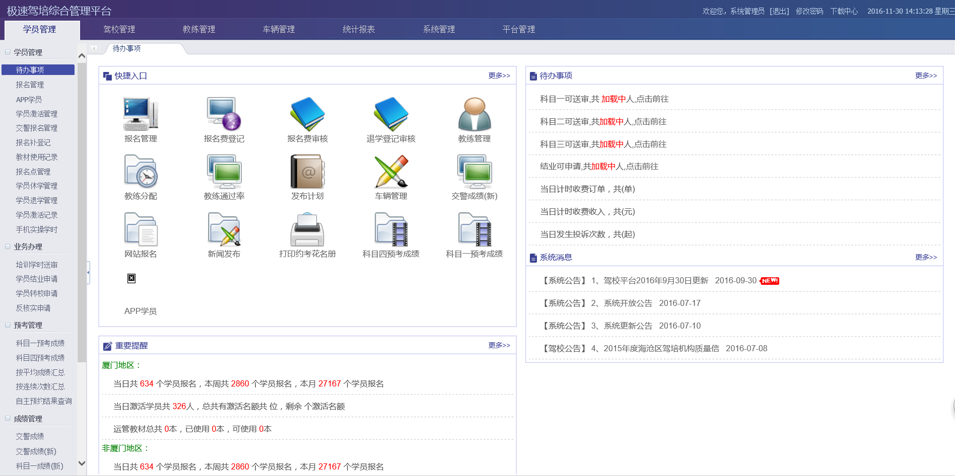 描 述:极速驾培综合管理平台,由福州中振网络科技有限公司研发,用于学时管理,驾校管理和交警报名管理为一体的综合管理平台。